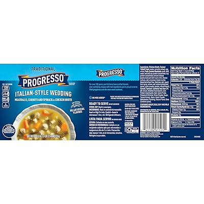 Progresso Vegetable Classics Soup Garden Vegetable 185-Ounce Cans Pack of 6 1968 2606 Campbells Low Sodium Soup Chicken with Noodles 1075 Oz Pack of 12 Packaging May Vary. 120 calories nutrition grade C problematic ingredients and. 1-48 of 62 results for progresso italian wedding soup Progresso Traditional Italian-Style Wedding Soup 185 oz Pack of 12.